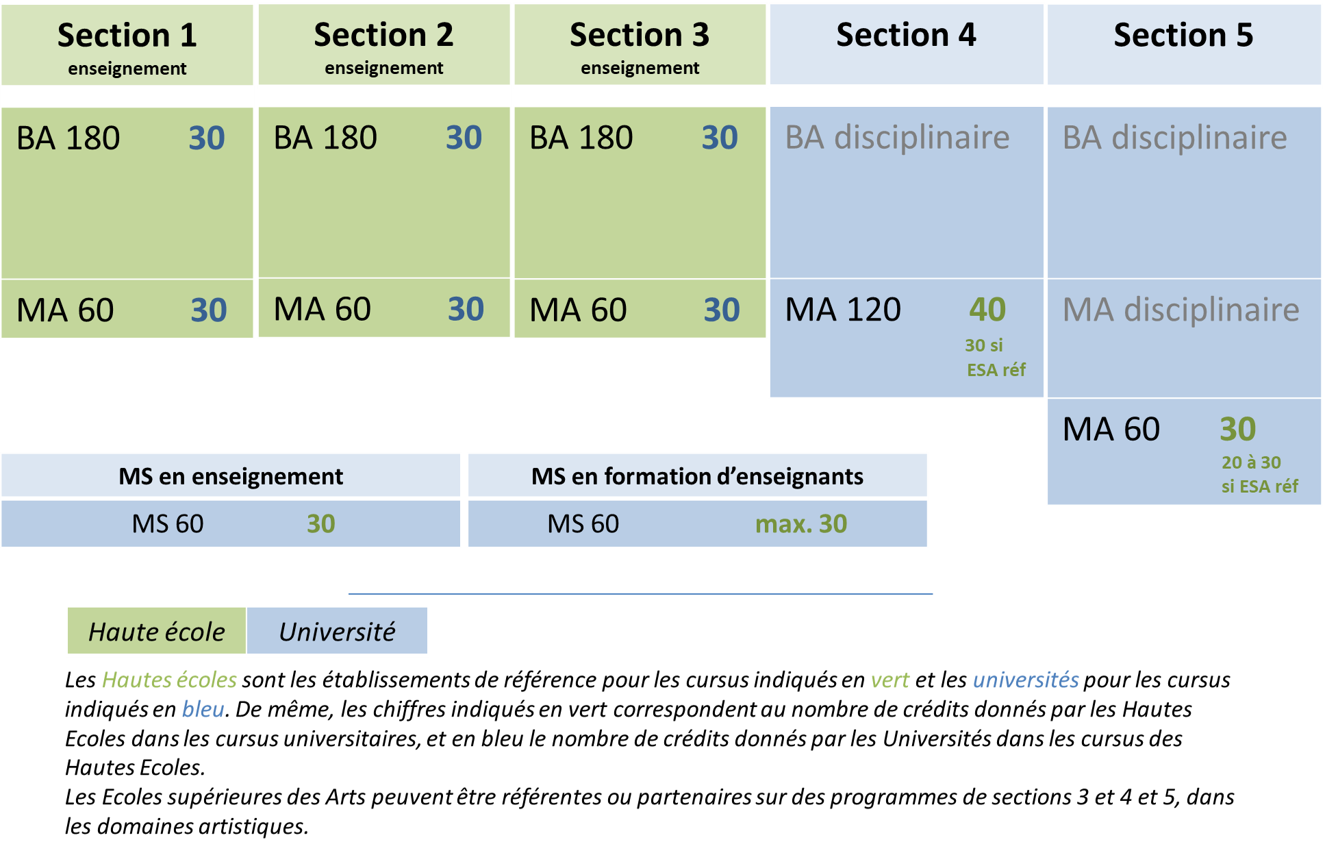 - Section 5: Bachelier et Master disciplinaire + Master 60 en enseignement de la discipline