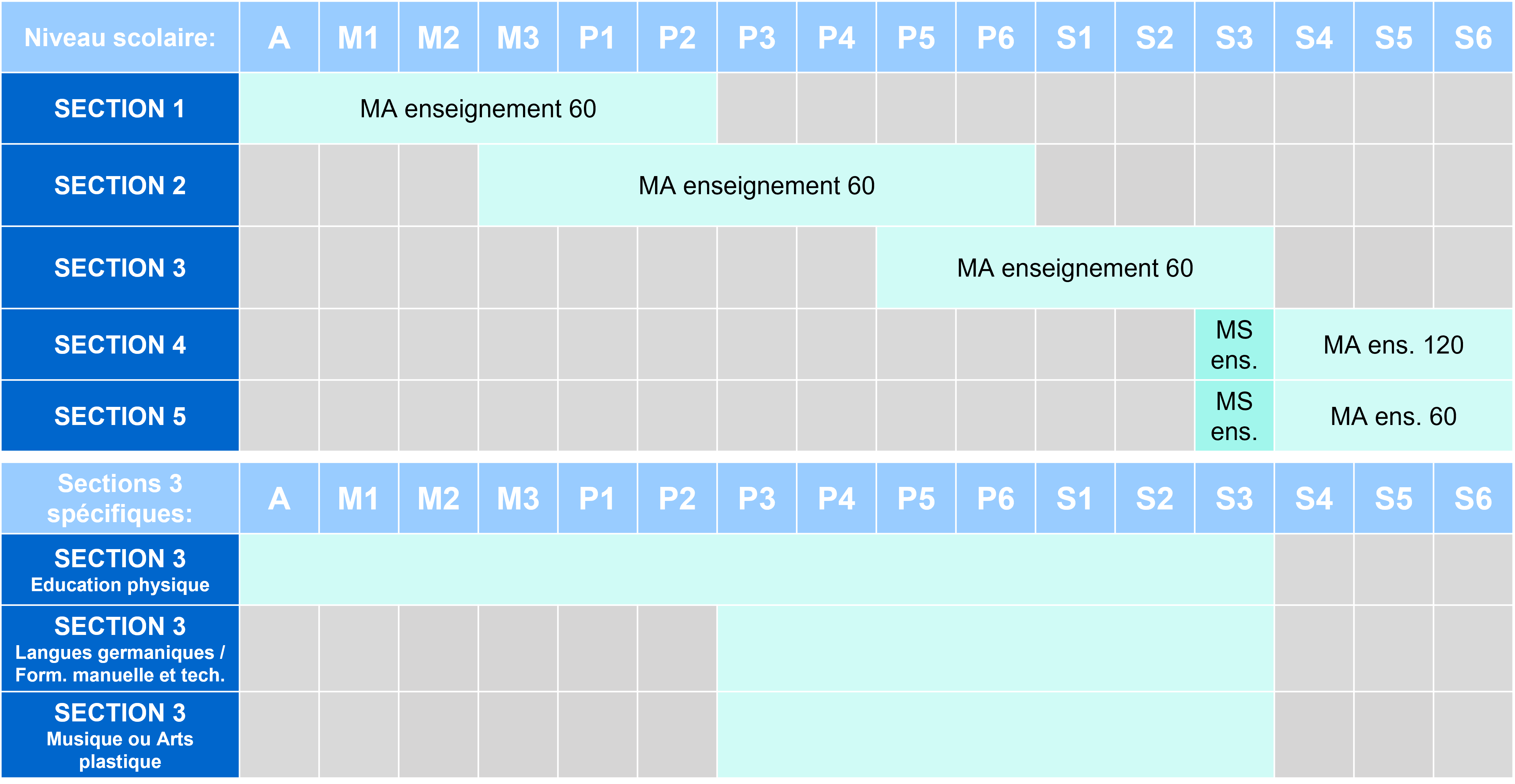 Bachelier et Master en enseignement sections 1-3 (240 ECTS)